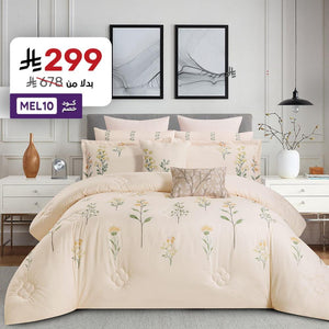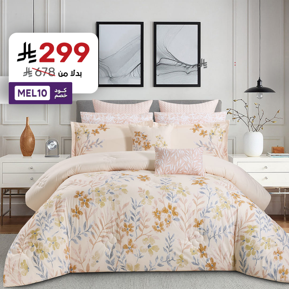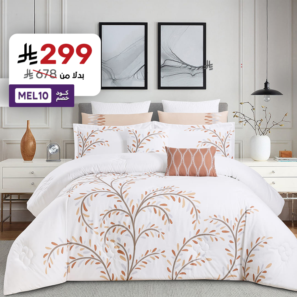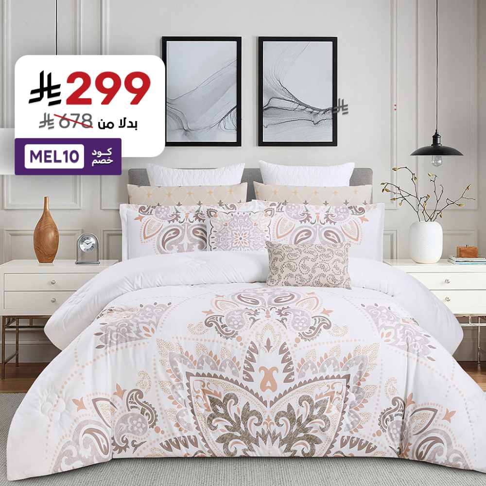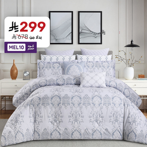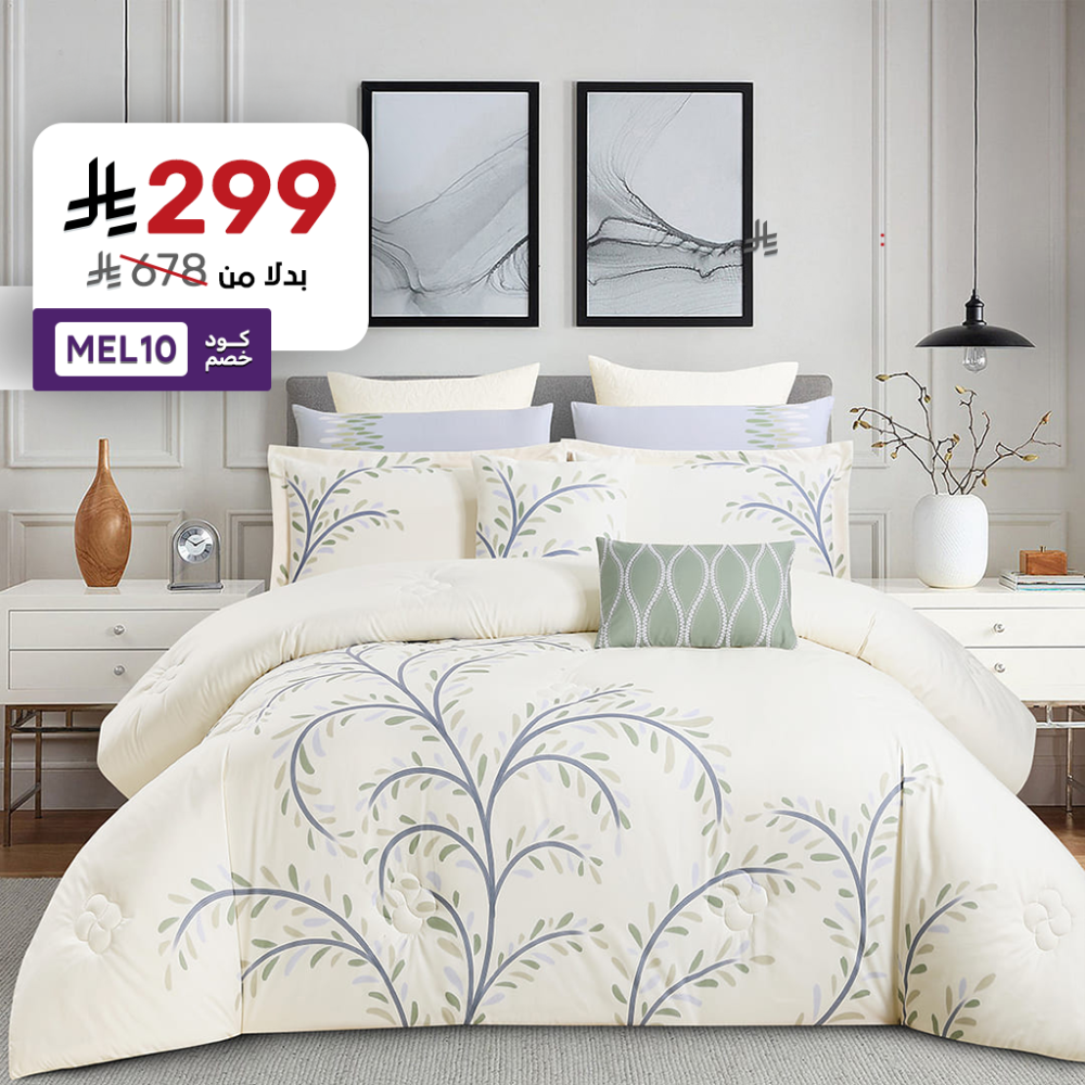 امنح غرفتك لمسة من الصفاء والانتعاش مع مفرش ريفيرا الساحر،مختار بعناية من ميلين يجمع بين النعومة و المتانة في آن واحد بحشوة ناعمة اختيرت بعناية و المصنوع من خامة مايكروفايبر فاخرة ومعالجة بأحدث التقنيات لتمنحك إحساسًا غير مسبوق بالبرودة والنعومة الفائقة، حتى في أدفأ الليالي و يأتيك بمجموعة مميزه من 10 قطع.