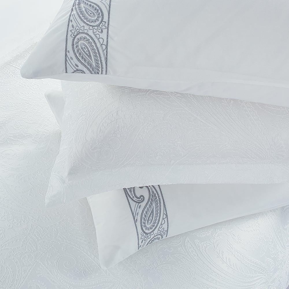 استمتع بتجربة نوم ملكية مع طقم أورليا Aurelia الجاكار الفاخر المطرز من ميلين بمقاس كوين – حيث تلتقي الذوق الإيطالي الراقي مع حرفية الأقمشة المختارة بعناية.