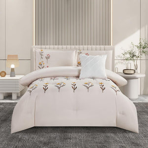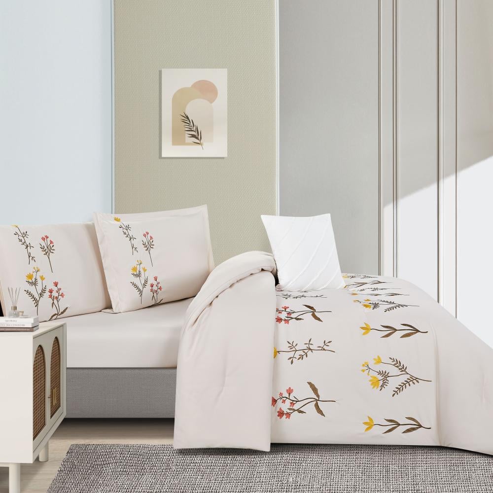 مفرش صيفي مفرد ونص مطرز فاخر 6 قطع - غراتسيا - بيج فاتح