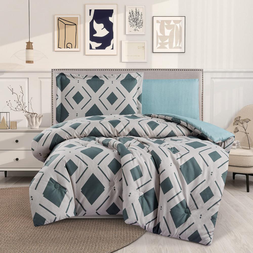 مفرش صيفي مفرد ونص 4 قطع - ليتون -رصاصي - ازرق