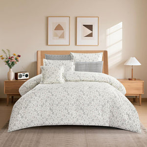 مفرش قطن صيفي مزدوج 8 قطع - زافيرا -سكري - رمادي